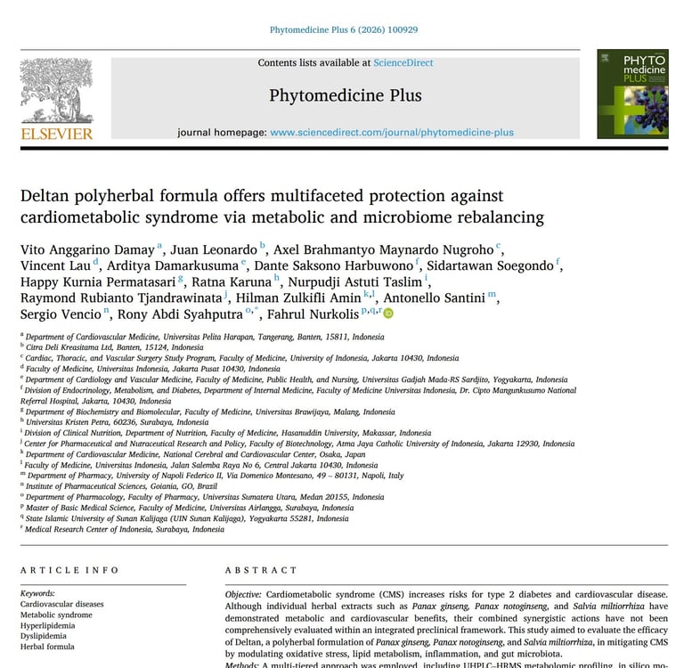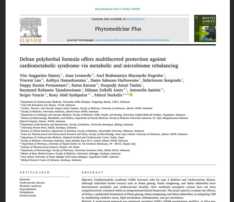 Deltan polyherbal formula offers multifaceted protection against cardiometabolic syndrome via metabolic and microbiome rebalancing. Elsevier. Phytomedicine plus (6), 2026