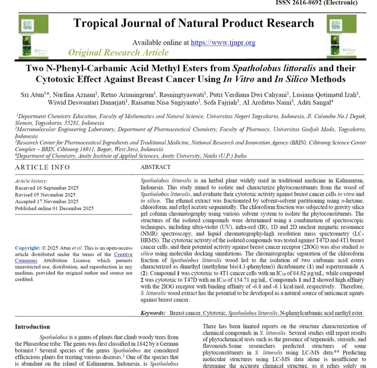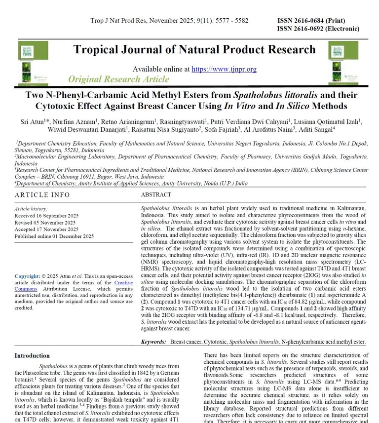 Two N-Phenyl-Carbamic Acid Methyl Esters from Spatholobus littoralis and their Cytotoxic Effect Against Breast Cancer Using In Vitro and In Silico Methods. 10.26538/tjnpr/v9i11.43